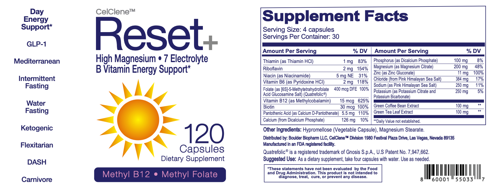 7 Energy Electrolytes, High Methyl B12, Methyl Folate, Pink Salt, High Magnesium, Super B Complex, Green Tea & Green Coffee Extracts, Biotin, Zinc, 72 Trace Minerals